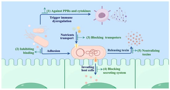 4.1. Inhibiting Bacterial Adhesion, Colonization, and Growth