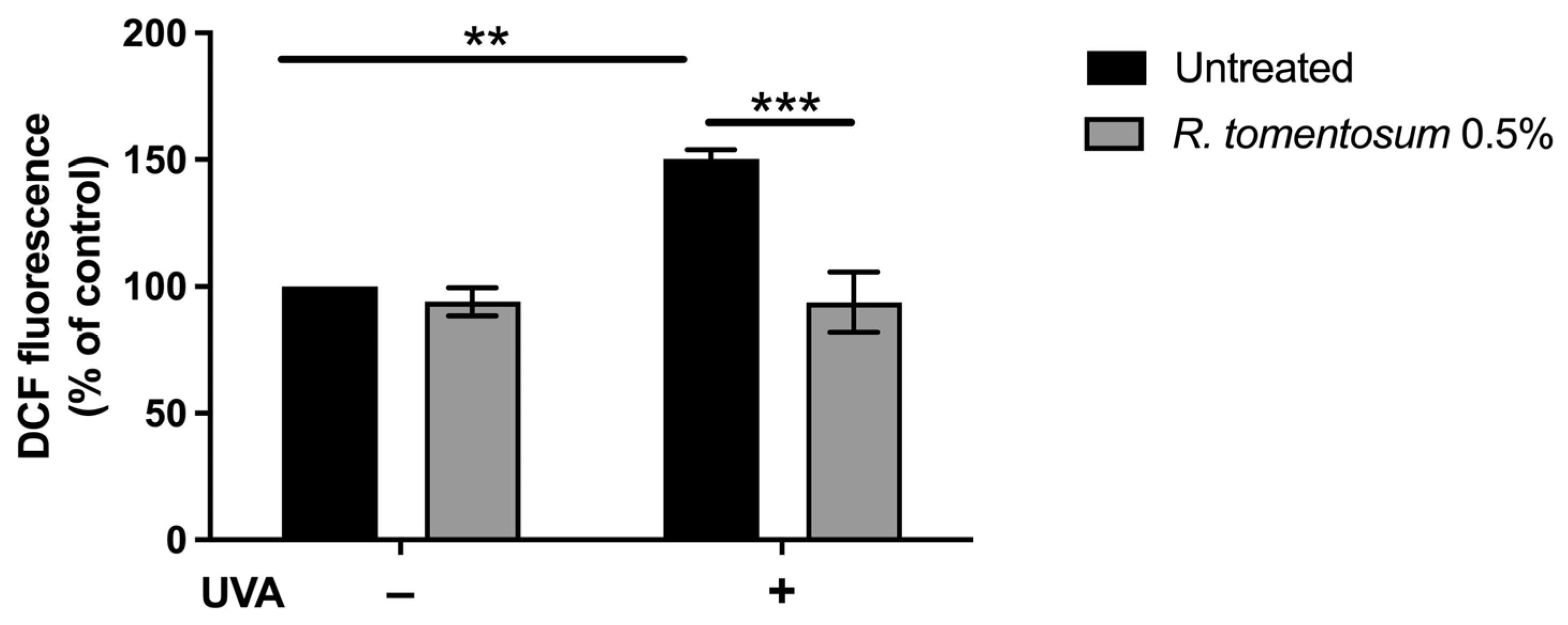 2.4.2. DCDFA Assay: Protective Effect of R. tomentosum Extract on HaCaT Cells