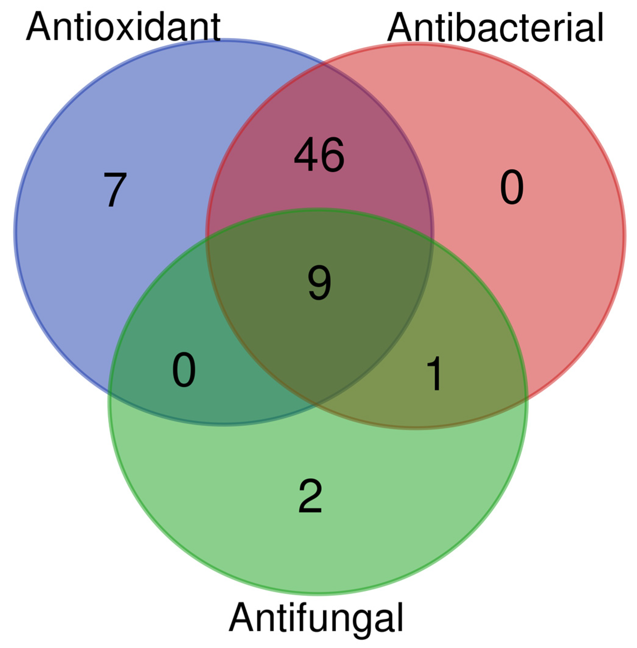 2.5.1. Antibacterial Activity of the R. tomentosum Extract