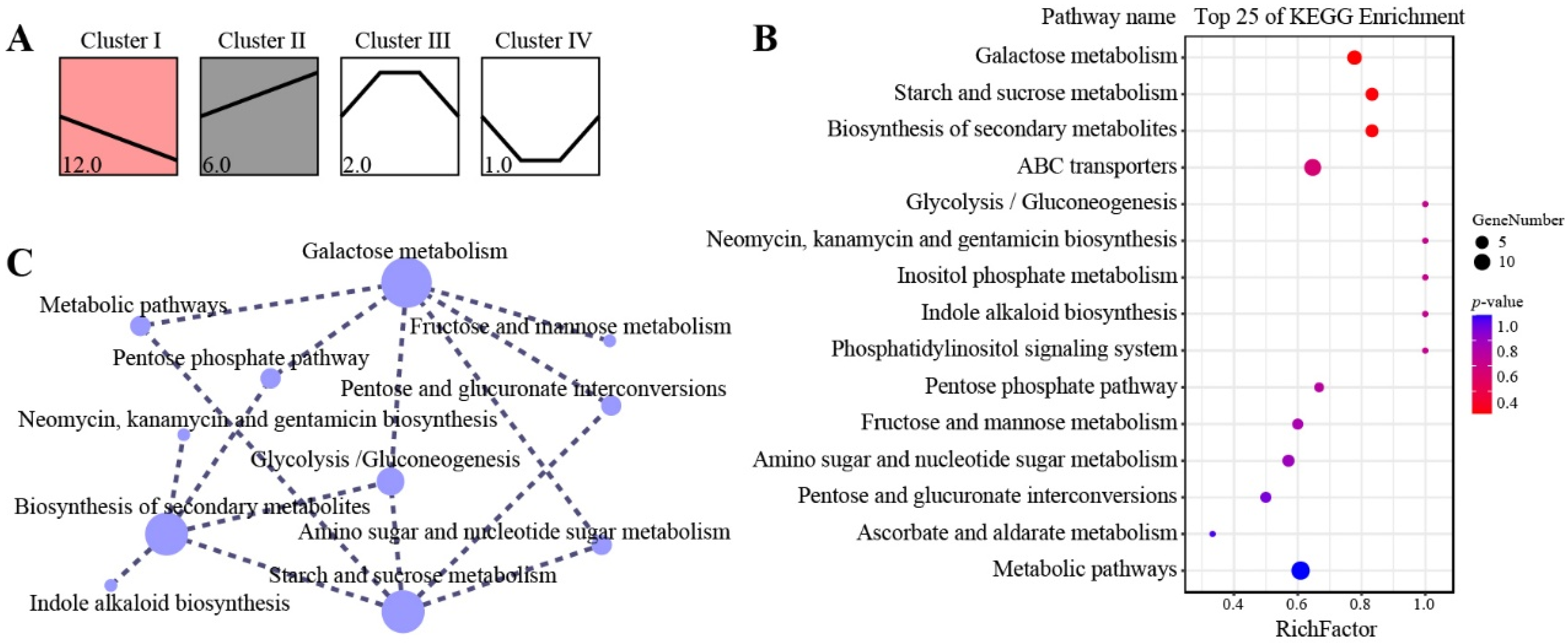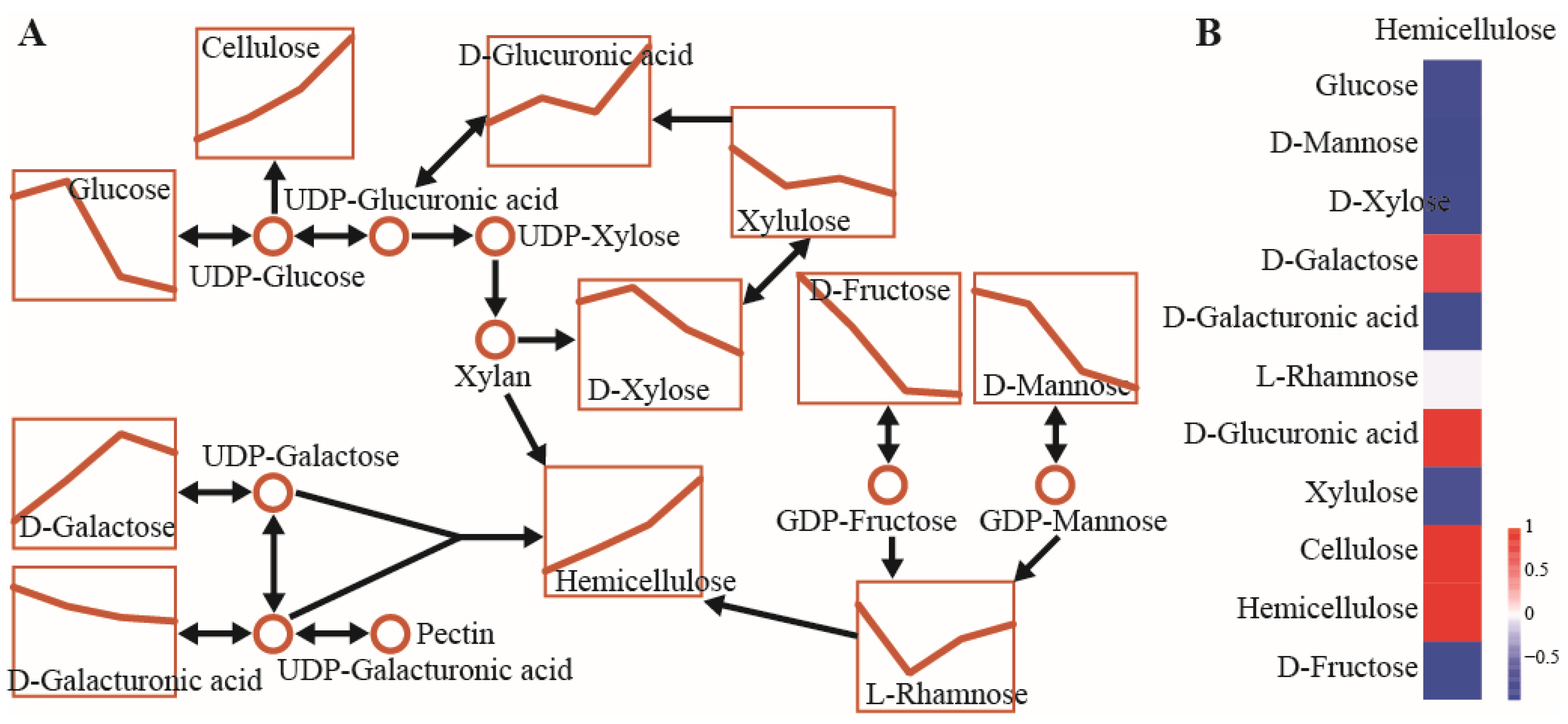 3.3. Selection of Metabolic Pathways Related to Key Carbohydrates in Seed
