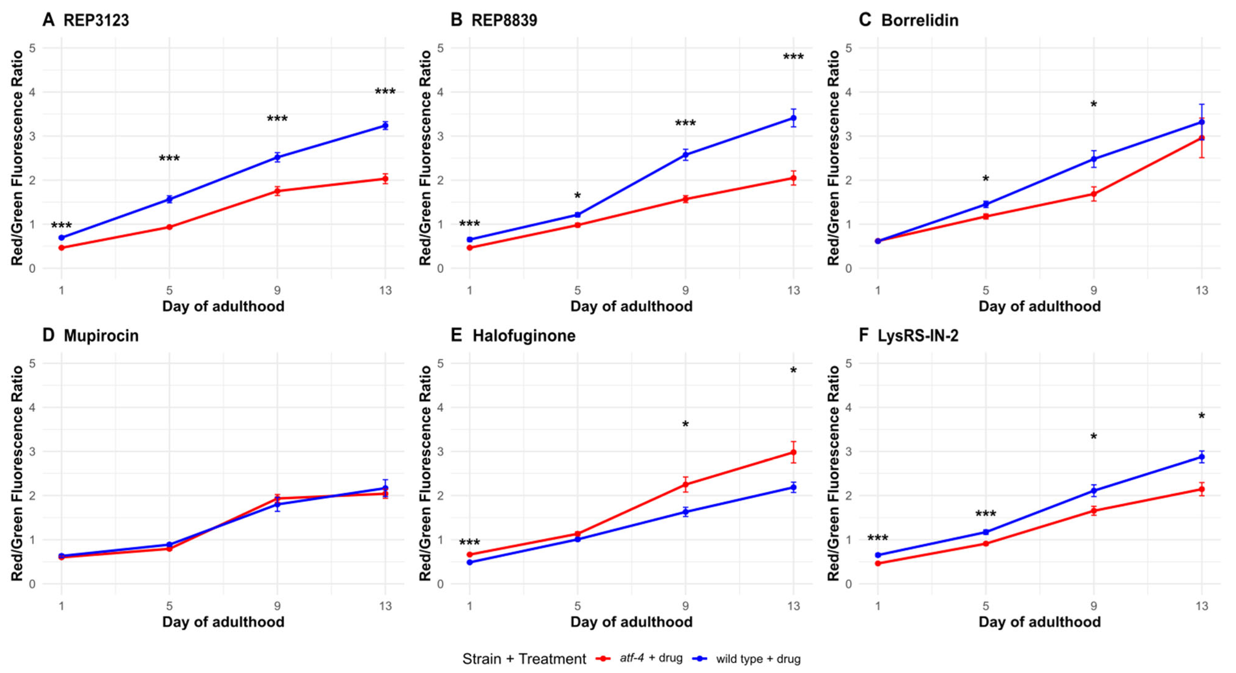 atf-4(ok576) animals at several timepoints. Given halofuginone’s known tolerability limits and reported off-target effects [