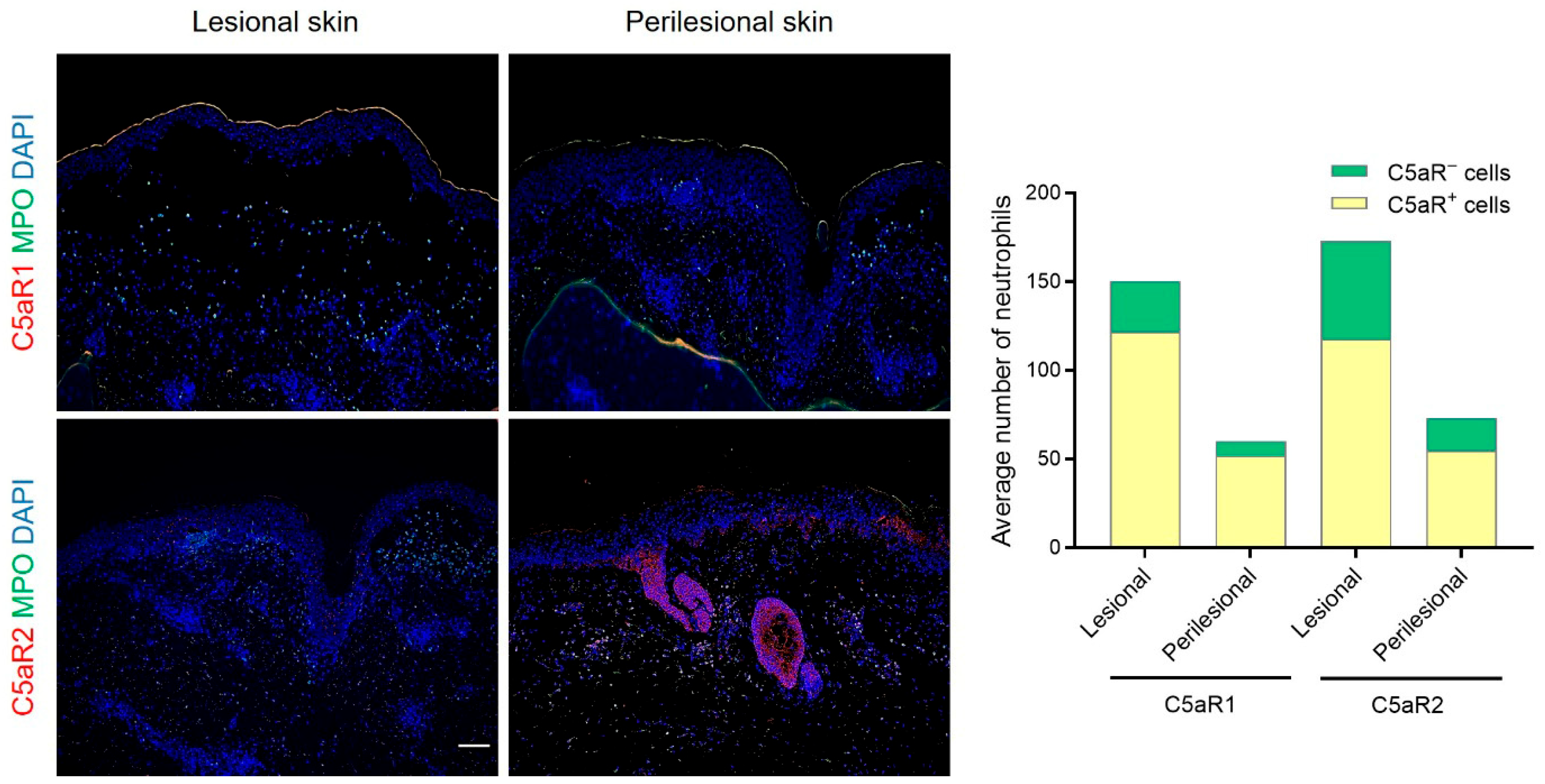 - Emtenani, S.; Holtsche, M.M.; Stahlkopf, R.; Seiler, D.L.; Burn, T.; Liu, H.; Parker, M.; Yilmaz, K.; Dikmen, H.O.; Lang, M.H.; et al. Differential Expression of C5ar1 and C5ar2 in Innate and Adaptive Immune Cells Located in Early Skin Lesions of Bullous Pemphigoid Patients. Front. Immunol. 2022, 13, 942493. [Google Scholar] [CrossRef]