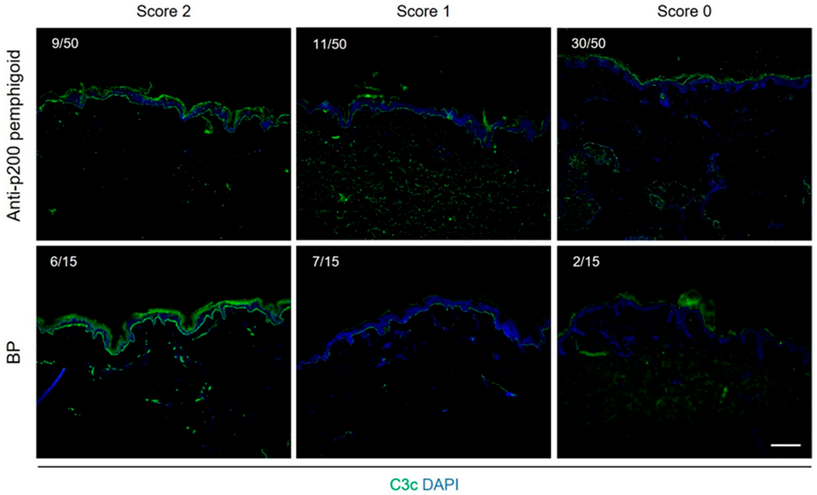 3.3. Sera from Anti-p200 Pemphigoid and BP Patients Fix Complement at the Cutaneous BMZ