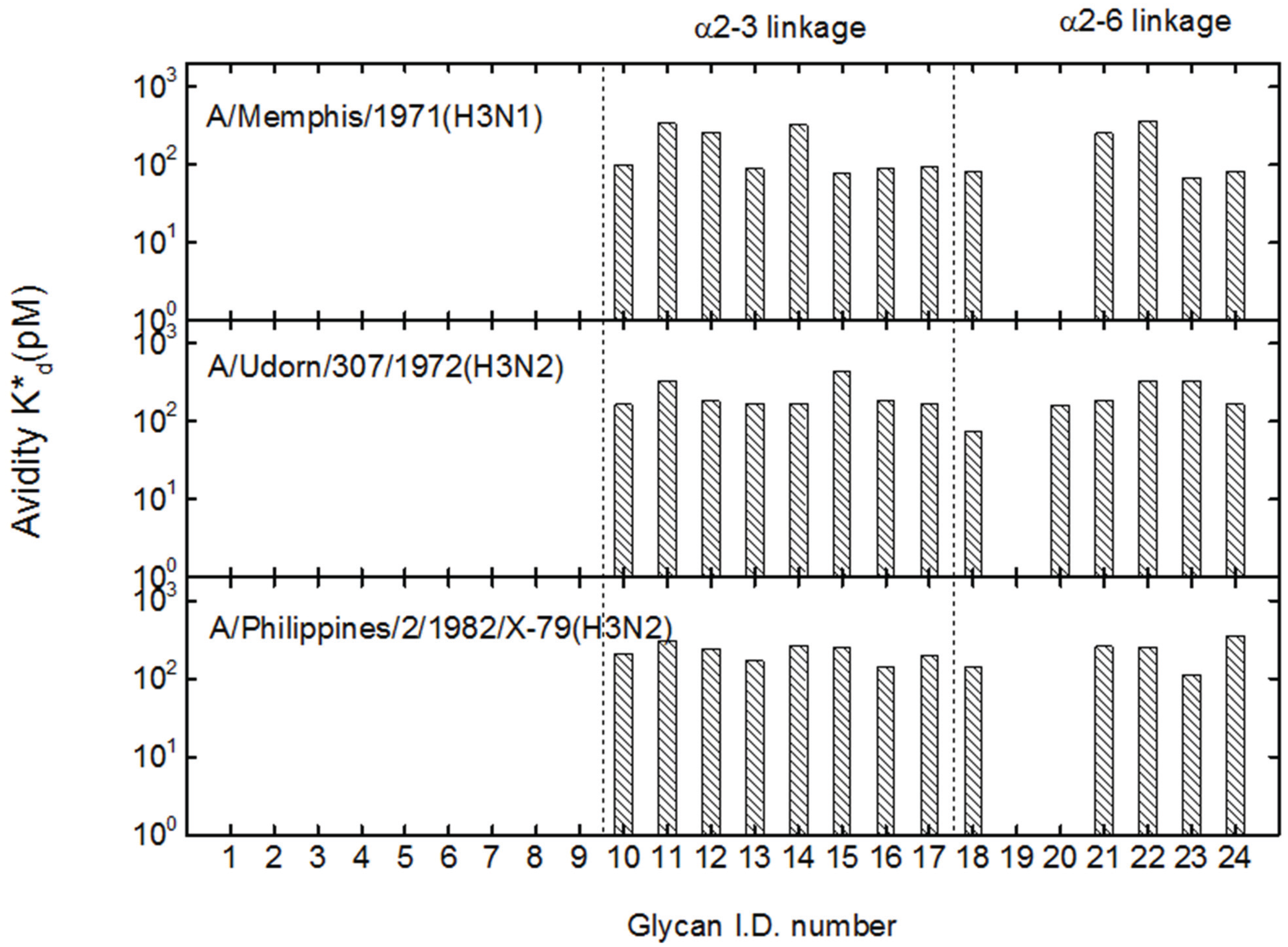 3.2. Receptor Specificity Profiles of Influenza Viruses of Subtype H3 and H1
