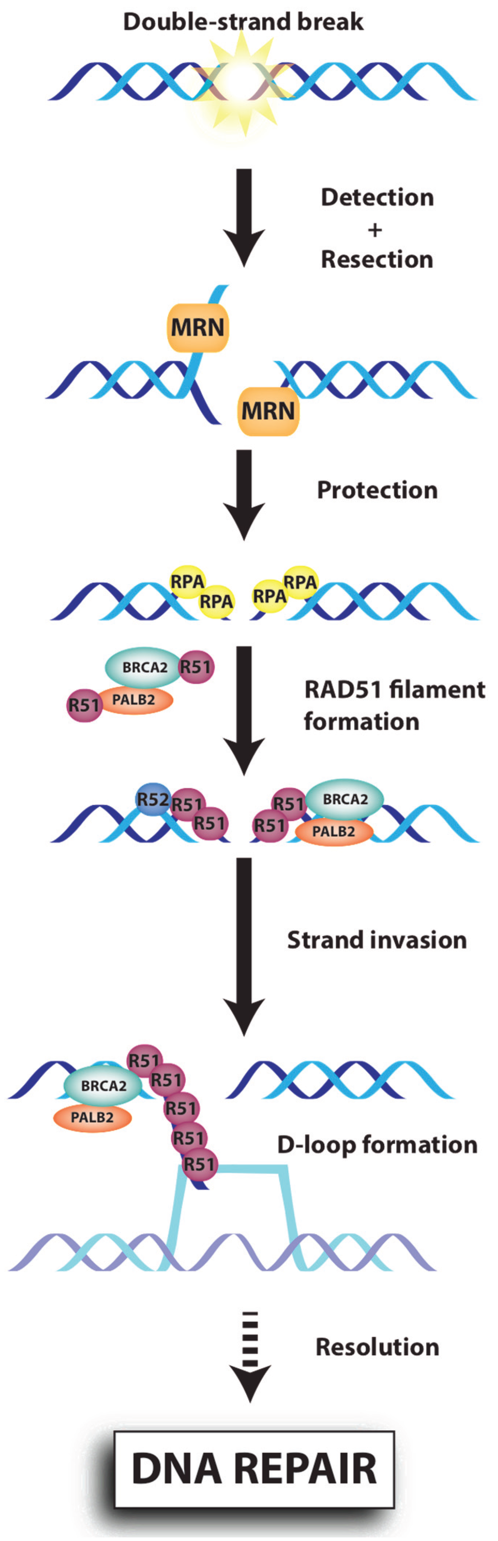 - Henning, W.; Stürzbecher, H.W. Homologous recombination and cell cycle checkpoints: Rad51 in tumour progression and therapy resistance. Toxicology 2003, 193, 91–109. [Google Scholar] [CrossRef]