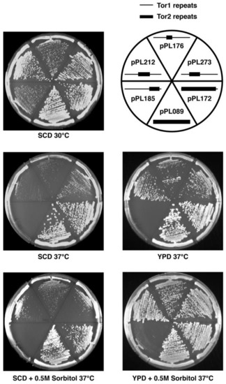 2.2. Genetic Analyses of TOR2–TOR1 Chimeras