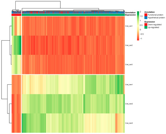 Hierarchical clustering analysis of the C. velia control (Cvel_cont1, Cvel_cont2, and Cvel_cont3) and Hg-treated libraries (Cvel_mer1, Cvel_mer2, and Cvel_mer3).
