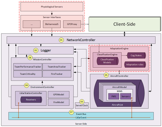 - AdaptationEngine, which is integrated in the server-side and comprises the ClassificationEngine that estimates the user’s cognitive states from the extracted neurophysiological features, and the actual adaptation logics to infer the automation level from a combination of the estimated cognitive states and other operational or mission inputs. The automation level is then passed to the relevant modules in the server, which in this case could be either MissionController or AircraftController.
