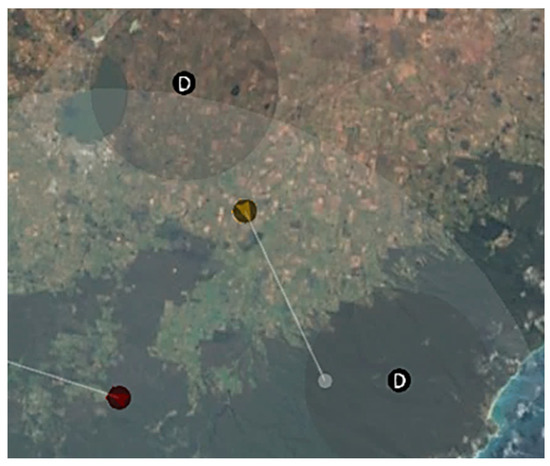 Clients (Figure 3) serve as the simulation UI, performing the GCS functions of visualizing, planning, and coordinating UAV tasks. The “base” interface consists of a tactical map built on CesiumJS, a popular open-source library typically used for dynamic 3D geospatial visualization and mapping applications.