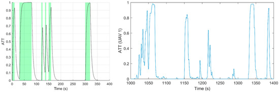 The model was applied to determine the allocation of attention to different UAV platforms and UI components in the scenario. A desk-mounted eye tracker was used to determine the user’s gaze, which was correlated with the UAV position on the tactical map and the tabs in the TM Panel, with obtained results being similar to the graph presented in Figure 16.