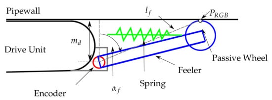 - Zhang, Z.; Meng, G.; Sun, P. Kinematic modeling and simulation of wheeled pipe robot in elbow at planar motion stage. In Proceedings of the 2017 2nd Asia-Pacific Conference on Intelligent Robot Systems (ACIRS), Wuhan, China, 16–19 June 2017; pp. 227–233. [Google Scholar] [CrossRef]