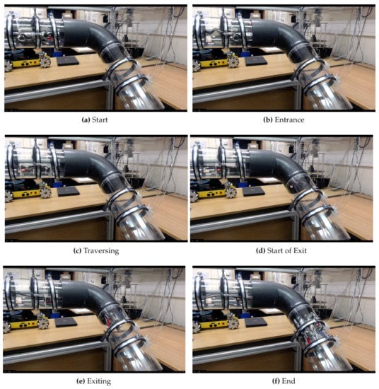- Lee, Y.G.; Kim, H.M.; Choi, Y.S.; Jang, H.; Choi, H.R. Control strategy of in-pipe robot passing through elbow. In Proceedings of the 2016 13th International Conference on Ubiquitous Robots and Ambient Intelligence (URAI), Xi’an, China, 19–22 August 2016; pp. 442–443. [Google Scholar] [CrossRef]