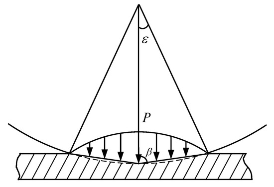 According to the literature [42], the stages of contact deformation are divided into the elastic deformation stage, the first stage of elastic–plastic deformation, the second stage of elastic–plastic deformation, and the plastic deformation stage. According to Hertz contact theory [43], the normal load of asperity in each stage can be obtained. The total contact stiffness of the asperities can be calculated through the ratio of contact force increment and deformation . Thus, the contact stiffness of the elastic deformation stage , the contact stiffness of the first stage of elastic–plastic deformation , and the contact stiffness of the second stage of elastic–plastic deformation can be obtained.