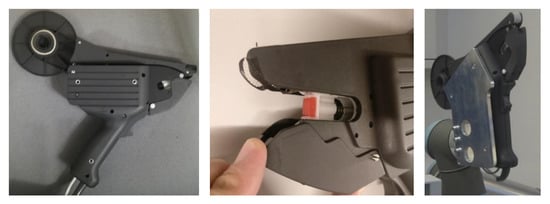 - Status of the safety device, i.e., the tilting component on the tip of the pistol (see the central picture in Figure 8). The pistol motor starts only if it is in a closed position.