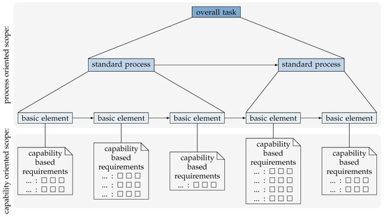 In comparison to existing methods such as [6], we suggest, that the break down of a process or task is composed of a process and a capability oriented scope, see Figure 2.