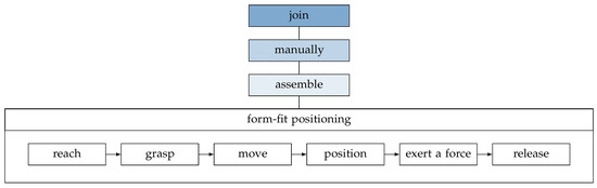 A specific standard process can be described by the same sequence of basic elements. Therefore, each standard process is predefined by its specific basic elements. Figure 4 exemplarily displays this break down of the standard process “form-fit positioning”.