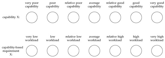 To determine the specific need of robot support for an individual, the determined capability-based requirements of a basic element are compared with the corresponding capabilities of this individual. In order to compare the two different types, capabilities and capability-based requirements have the same definitions and a compatible rating scale, as shown in Figure 5. It is divided in seven levels allowing sufficient differentiability to map various degrees of capabilities or workloads. Furthermore, it provides a defined center representing the average capability and workload.