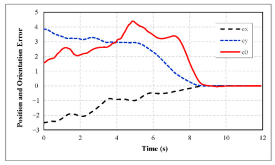 Figure 10, Figure 11 and Figure 12 show the simulation results of this example using the above values for the robot and control system parameters. It is clear from Figure 10 that the position and orientation errors of the robot converge to a sufficiently small vicinity of zero as it is explained in Section 3.3.