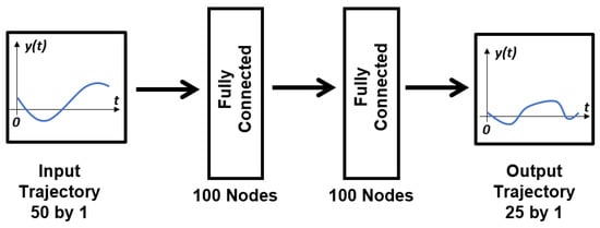 The architecture of the employed neural network that has two fully-connected hidden layers and 100 nodes in each hidden layer. The input and output layer contains 50 and 25 nodes, respectively.