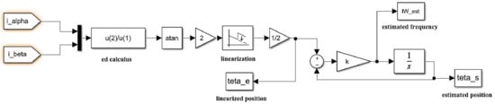 To estimate the electrical angular speed of the rotor, an adaptation based on a proportional-integral regulator (PI) is performed.
