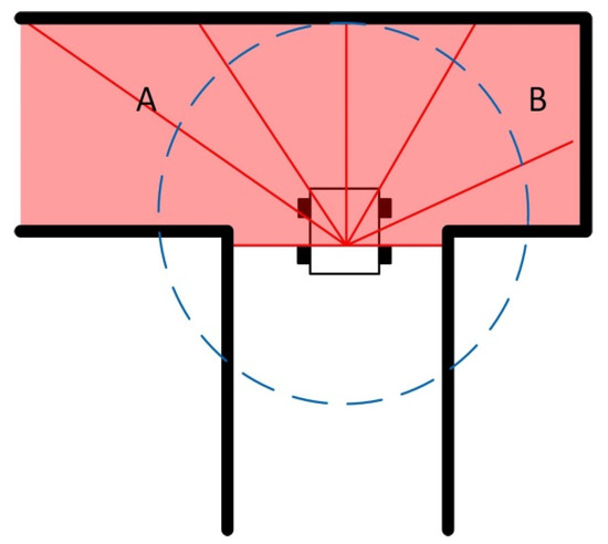 For instance, in the case of existing algorithms such as the Vector Field Histogram (VFH) based path planner [9] that rely solely on information available within the triggering distance, the two openings, A and B, are equally appropriate. This leads to a problematic scenario if the planner chooses to steer in the direction of B, as mentioned in Section 1. The robot will crash into the wall unless it stops or moves backward. This problem was previously pointed out by Ulrich and Borenstein in [9] when they developed the VFH* method. They designed a hybrid path planner by combining the A* search algorithm and VFH to prevent failure in the above-mentioned scenario. However, it requires prior knowledge of the environment to improve the performance of the local planner.