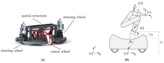 - Carbonari, L.; Tagliavini, L.; Botta, A.; Cavallone, P.; Quaglia, G. Preliminary observations for functional design of a mobile robotic manipulator. Mech. Mach. Sci. 2021, 102, 39–46. [Google Scholar]