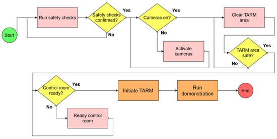 Figure 8 illustrates the content of the ‘Run Demonstration’ sequence—one of the steps presented in Figure 7. Within this case study, the angular position demands of the TARM joints are set in OMS by the operator. Once the angle is set by the operator, CorteX facilitates the initiation of the move to the requested position. Once the move is completed and confirmed by CorteX, the OMS operator performs a visual check records completion of the procedure presented in Figure 8.