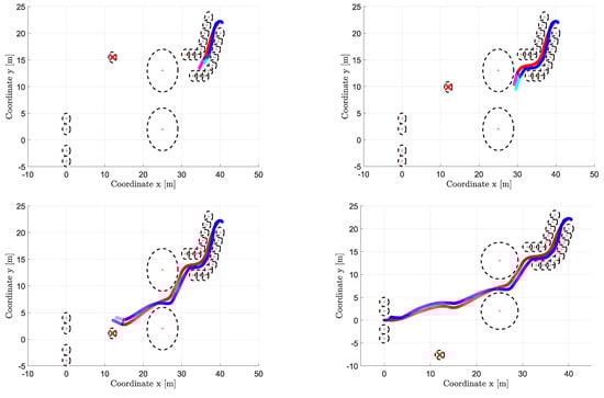 In order to account for the collision avoidance while solving the cooperative trajectory planning task, we include the constraint (44) in the computation of both and . Note that any obstacle position can vary over time but, for the MPC formulation, it is assumed to be fixed during the prediction horizon.