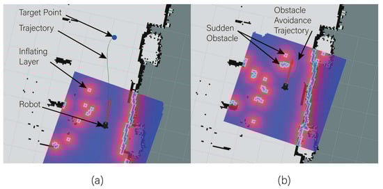 For realizing obstacle avoidance, localization, motion planning, and navigation, it is necessary for the robot to obtain environment information by perception []. Mobile robot perception can be conducted by detecting recognizable features of the environment using different types of sensors []. Robot vision and laser scanners are useful sensors for environment perception []. In this way, the meaningful elements (e.g., objects and scenes) in the environment can be detected to for complete knowledge of the environment for carrying out the movement safely and reliably. Based on this, by conducting initial path planning, robot navigation can be accomplished whereby unexpected static or dynamic obstacles are avoided while tracking the motion trajectory [,].