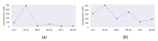 In terms of compression, five different pre-defined levels were defined as default: where level 1 corresponds to a low compression, hence higher resolution; whereas level 5 corresponds to high compression, and hence lower resolution. The five levels, ranging from 1 to 5 correspond to a subset of the compression profiles shown in Table 1 and are HR-C, HR-NC, MR-C, MR-NC, and LR-NC, respectively. It is worth noting that these levels can be adjusted in runtime and according to the user requirements.