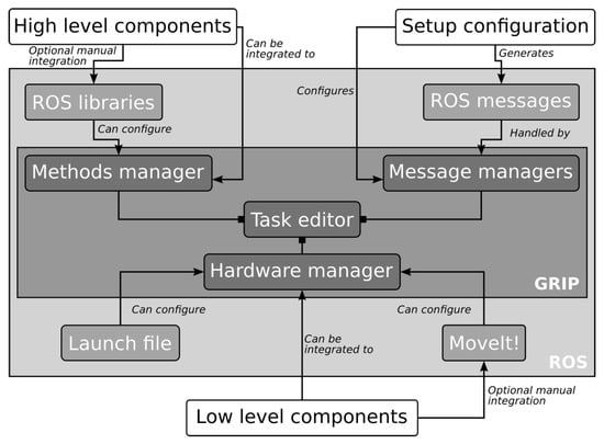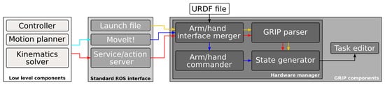 - Denoun, B.; Leon, B.; Hansard, M.; Jamone, L. Grasping Robot Integration and Prototyping: The GRIP Software Framework. IEEE Robot. Autom. Mag. 2021, 28, 101–111. [Google Scholar] [CrossRef]