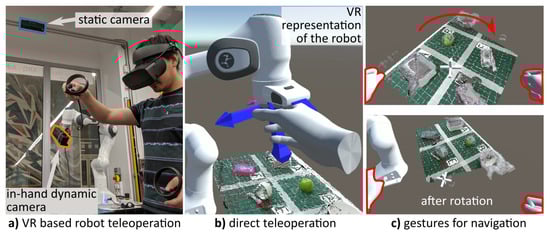 - Omarali, B.; Denoun, B.; Althoefer, K.; Jamone, L.; Valle, M.; Farkhatdinov, I. Virtual Reality based Telerobotics Framework with Depth Cameras. In Proceedings of the IEEE International Conference on Robot and Human Interactive Communication (RO-MAN), Naples, Italy, 31 August–4 September 2020; pp. 1217–1222. [Google Scholar]