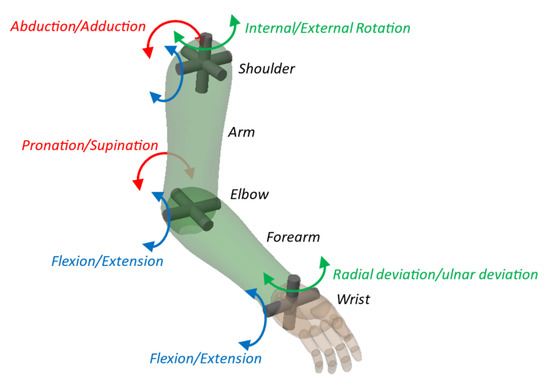 Figure 3 shows the main movements of the upper limb, except finger movements.