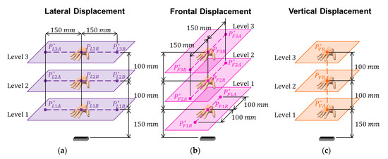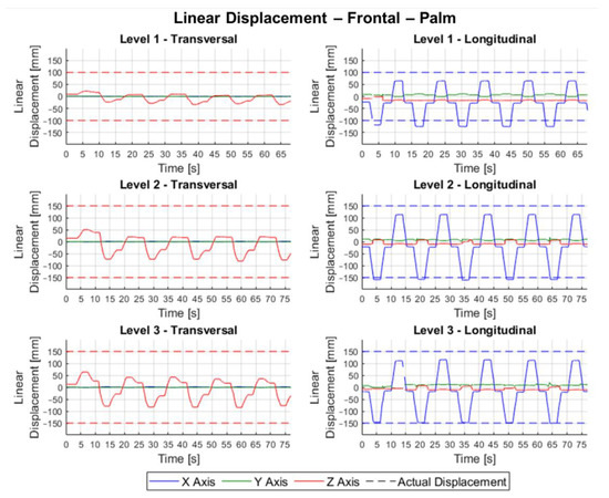 It is important to note that the frontal linear displacements on the first level have a shorter trajectory than the other levels due to the restriction in the movement of the robotic arm.