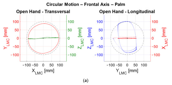 The circular displacement experiments have the specific objectives: observation of the LMC acquisition rate; verification of the consistency of the readings made when there is displacement in more than one axis of the sensor; the calculation of the error in relation to the programmed trajectory; the evaluation of the correlation between two orthogonal axes.