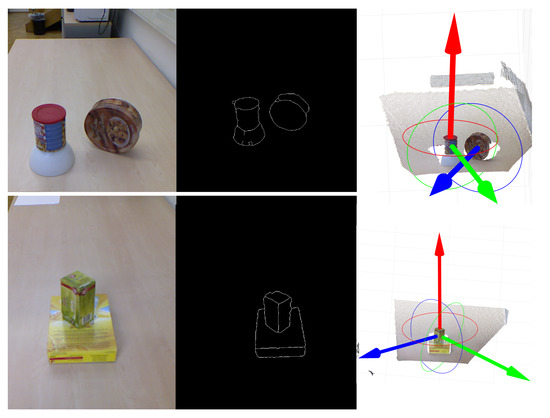 - Schmidt, P.; Vahrenkamp, N.; Wachter, M.; Asfour, T. Grasping of unknown objects using deep convolutional neural networks based on depth images. In Proceedings of the IEEE International Conference on Robotics and Automation (ICRA), Brisbane, Australia, 21–25 May 2018; pp. 6831–6838. [Google Scholar]