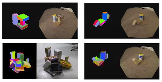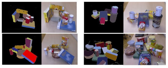 In addition to the OSD datasets, Figure 14 presents the algorithm’s performance on real-time data taken from Microsoft’s Azure Kinect camera. Given a higher quality depth sensor, the presented algorithm is able to better capture individual surfaces across cluttered environments. Even with abnormal poses, the proposed approach maintains real-time performance and high segmentation accuracy as can be seen in the video demonstration provided in [21]. These qualitative results underscore a superior level of robustness as it relates to unseen objects and scenes. Concisely, the proposed algorithm demonstrates an acute level of invariance to rotation, scale, lighting conditions, clutter, and occlusion. Moreover, the proposed approach remains highly effective at segmenting objects even in noisy environments due to the robustification measures that are applied.