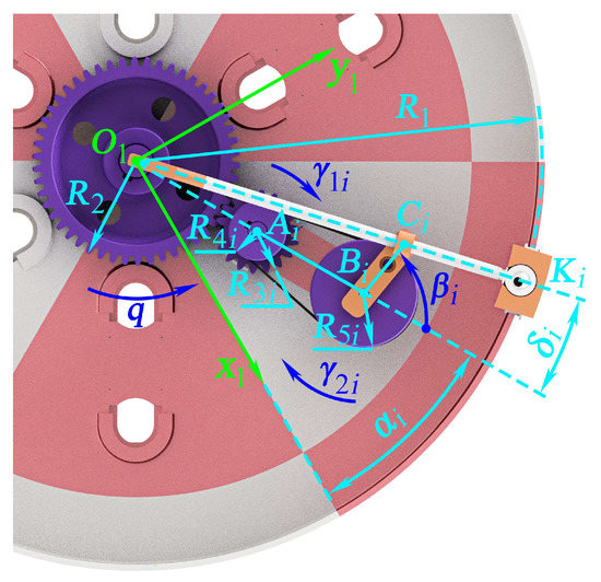 where i = 1…6 is the index number of a kinematic chain; is the radius of driving wheel 2; is the radius of gear 3.