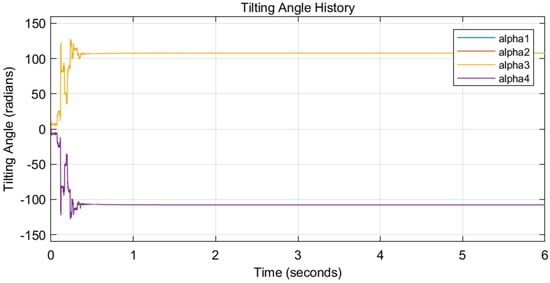 However, both strategies lead to unrealistic changes in tilting angles. The tilting angles undergo large changes during flight [,]; some of these are unexpectedly fast. These requirements are hardly practical; a reasonable tilting angle should be within a small range and not extend beyond a certain period ().
