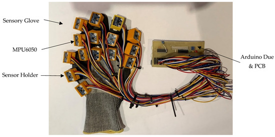 For the electrical and electronic components of the system, the Arduino© Due provided a robust solution for the data acquisition process. Compared to similar devices, the MPU6050 sensors were an effective solution for motion capturing due to their low-cost, size, and performance capabilities. The mechanical system, which included the glove and the sensor holders, ensured that all the hardware components of the system were protected.