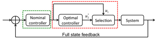 In this work, the application time is set to be equal to such that is applied for one interval. Additionally, is only applied if it results in both a smaller performance cost and terminal constraint cost over the prediction horizon compared to the nominal control . This is considered as the Selection procedure in the control scheme, as illustrated in Figure 1.