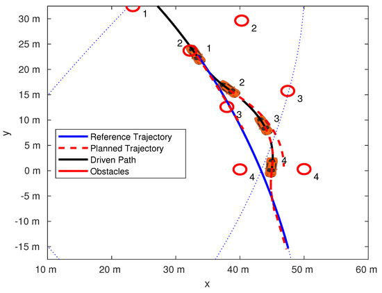- Li, X.; Sun, Z.; Zhu, Q.; Liu, D. A unified approach to local trajectory planning and control for autonomous driving along a reference path. In Proceedings of the 2014 IEEE International Conference on Mechatronics and Automation, Tianjin, China, 3–6 August 2014; pp. 1716–1721. [Google Scholar] [CrossRef]