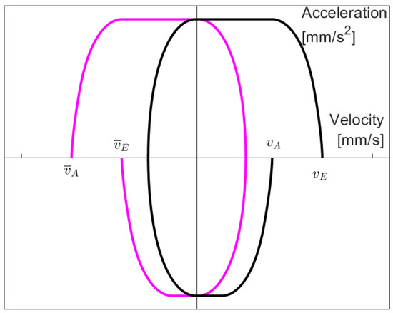 We do not term our approach “optimal” because we do not have mathematical proof for this (for such kinds of proof see [28,34] where, for example, in [28] the proof is performed by assuming that there is a motion function needing less time, which leads to a contradiction based on a theorem from the field of differential equations; the proof depends on the additional assumption that the jerk is zero at an intermediate velocity). Since, at any time, at least one restriction is adopted, we term our function “fast”.
