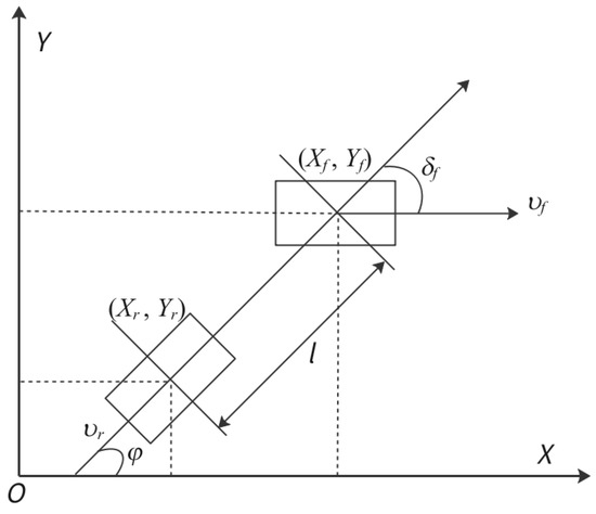 The driving speed at the axle center of the rear axle is . represents the coordinates at the axis of the rear axle, and represents the heading angle.