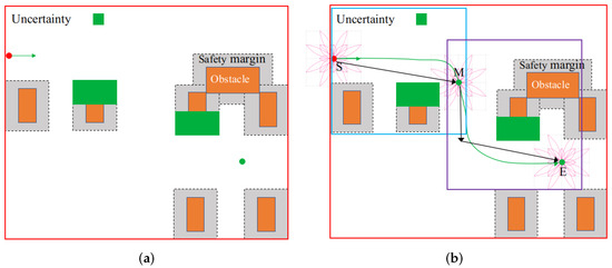 For the convenience of description, we have provided the following definitions for (1): denotes the obstacles; denotes the shape of the obstacles; denotes the position of the obstacles; denotes partial information about the obstacles’ positions and shapes.