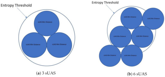 27]. Unlike these complex and complicated methods, the main focus in this study was to implement entropy-based distributed behavior, which demonstrates a simple means of coordination and can be easily applied to a sUAS.