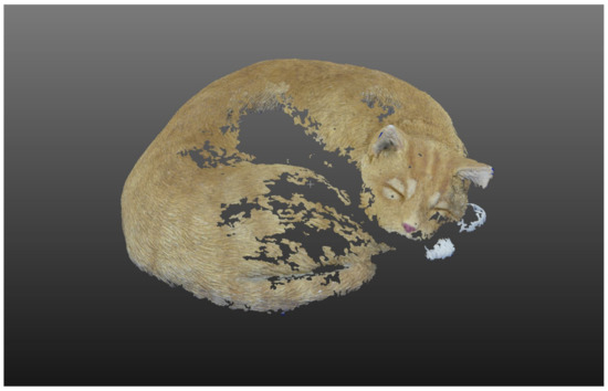 A similar process to the previous parameter analysis was used to evaluate the custom dataset. After all of the trials were completed, each model was evaluated for completeness. Having the ability to evaluate the COLMAP software with the custom dataset led to several new observations. With the “Cat” dataset, an “overmeshed” model resulted in outlier points that appeared where no object could be, as shown in the cat model (