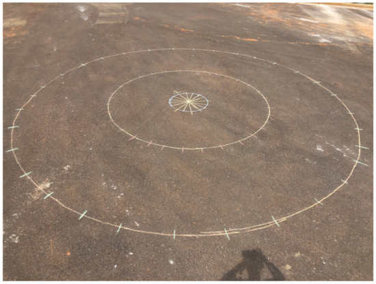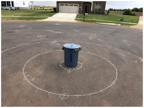 Once the benchmarking dataset was complete, a custom dataset was constructed for validation. To accomplish this, a trashcan with exactly 1-foot pieces of tape on it was used as the object to be reconstructed. The purpose of the tape on the trashcan was to create ground truth information. It was placed inside of a circle with a diameter of 10 feet and 32 equally spaced markings for camera placement.