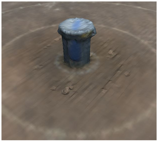 Figure 17 depicts the overmeshed example where the modeled area was much too large, which resulted in the object being so overmeshed that the detail of the trashcan was diminished to just a rough cylindrical shape (
