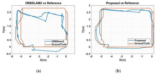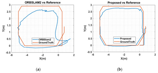 - Mur-Artal, R.; Tardos, J.D. ORB-SLAM2: An Open-Source SLAM System for Monocular, Stereo, and RGB-D Cameras. IEEE Trans. Robot. 2017, 33, 1255–1262. [Google Scholar] [CrossRef] [Green Version]